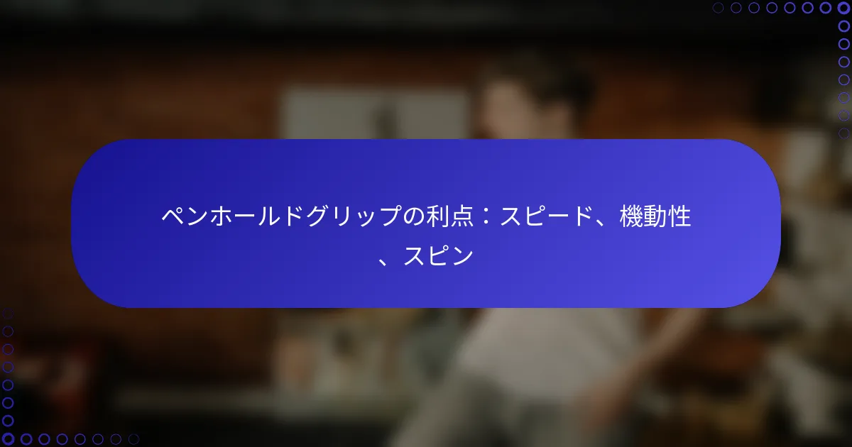 ペンホールドグリップは、ラケットスポーツにおいて独自の利点があるため、好まれる技術です。これには、スピードの向上、機動性の向上、優れたスピン生成が含まれます。手首の動きを迅速にし、反応時間を改善することで、このグリップスタイルは選手が素早いフリックを実行し、コート上で機敏に調整することを可能にします。その結果、アスリートはより良いショット角度とより大きなスピンコントロールを達成でき、ペンホールドグリップはダイナミックなプレイに効果的な選択肢となります。 Key sections in the article: Toggle ラケットスポーツにおけるペンホールドグリップの利点は何ですか? ボールストライキングにおけるスピードの向上 プレイ中の機動性の向上 スピン生成能力の向上 手首の柔軟性とコントロールの向上 迅速な反射状況における利点 ペンホールドグリップはどのようにスピードを向上させるのか? 速いボール配信のメカニクス 他のグリップとのショットスピードの比較 スピードの利点に関する専門家の証言 ペンホールドグリップはどのように機動性を向上させるのか? 手首の動きのダイナミクス フットワークとポジショニングの利点