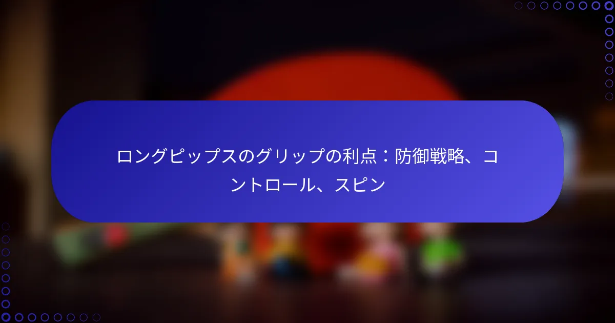 卓球におけるロングピップスラバーは、防御戦略を採用する選手にとって強力な武器です。ボールのコントロールを向上させ、相手のリズムを乱し、予測不可能なスピンの相互作用を生み出すことで、ゲームプレイの向上と試合中の精度を維持するための必須ツールとなります。 卓球におけるロングピップスラバーの利点は何ですか? 卓球においてロングピップスラバーを使用することは、防御戦略に焦点を当てる選手にとって大きな利点を提供します。コントロールを向上させ、相手のプレーを乱し、ユニークなスピンの相互作用を可能にすることで、ゲームを改善したい選手にとって貴重なツールとなります。 相手のプレーを乱すことで強化される防御戦略 ロングピップスラバーは、相手にとって予測不可能なプレー環境を作り出すのに優れています。ラバーの独特な表面は、ボールの軌道や速度を変えることができ、相手がショットを予測するのを難しくします。この乱れは、特に一貫したスピンと速度に依存する攻撃的な選手からの自滅ミスを引き起こす可能性があります。 ロングピップスを使用する選手は、予想外の角度や速度でショットを返すことで攻撃的な戦略に効果的に対抗できます。この防御的アプローチは、相手にゲームを適応させることを強いるため、ボールの挙動が変わることに苦労しながらミスを誘発することがよくあります。 正確なリターンとショット配置のためのコントロールの向上 ロングピップスラバーは、選手がリターンを正確に配置できるようにするため、コントロールを向上させます。ラバーの独特な特性により、選手は特にサーブや速いラリーを返す際に、より正確なショットを実行することができます。このコントロールは、次のショットを設定したり、相手にプレッシャーをかけたりする際に重要です。 ロングピップスの使い方をマスターすることで、選手はショット配置に対してより戦略的なアプローチを開発し、相手のポジショニングの弱点を突くためにテーブルの特定のエリアを狙うことができます。このレベルのコントロールは、特に接戦の状況で試合の結果に大きな影響を与えることができます。 攻撃的なショットに対抗するためのユニークなスピンとの相互作用 ロングピップスラバーとスピンの相互作用は、防御的な選手にとっての重要な利点です。ロングピップスは、入ってくるトップスピンを効果的に無効化できるため、選手は最小限の努力で攻撃的なショットを返すことができます。この能力により、相手が通常の攻撃戦略を実行するのが難しくなります。 重いスピンに直面したとき、選手はロングピップスを使用して「デッドボール」効果を生み出すことができ、これが相手を混乱させることがあります。この相互作用は、相手のリズムを乱すだけでなく、カウンターアタックの機会を開くことにもつながり、防御的なプレーを攻撃的な利点に変えることができます。 ショット結果の変動性の向上 ロングピップスラバーは、ショット結果の幅広い範囲を可能にし、選手のゲームに驚きを加えます。予測不可能なバウンドやスピンを生み出す能力は、相手を混乱させ、バランスを崩させることができます。この変動性は、競争の激しい試合で優位性を維持するために不可欠です。 選手は異なるストロークや角度を試すことができ、チョップ、ブロック、フリックなどの多様なショットタイプを生み出すことができます。この多様性は、相手がプレーの変化に適応するのに苦労するため、勝利のショットを生み出すためのオープニングを作るのに特に効果的です。 相手に対する予測可能性の低下 ロングピップスラバーを使用する主な利点の一つは、相手に対する予測可能性の低下です。相手は選手の意図を読み取るのが難しく、ためらいやミスを引き起こすことがよくあります。この予測不可能性は、メンタルの強さが重要な高リスクの試合において大きな資産となります。 ロングピップスをゲームに取り入れることで、選手は相手を常に緊張させる独自のスタイルを発展させることができます。この戦略的な利点は、特に相手のショットのリズムと予測可能性に依存する選手に対して、勝利と敗北の違いを生むことがあります。 ロングピップスラバーはどのように防御戦略を強化しますか? ロングピップスラバーは、選手が相手のリズムを効果的に乱し、ゲームのペースをコントロールできるようにすることで、防御戦略を大幅に強化します。このタイプのラバーは、ユニークなスピンの相互作用を生み出し、相手がショットを予測し、反応するのを難しくします。